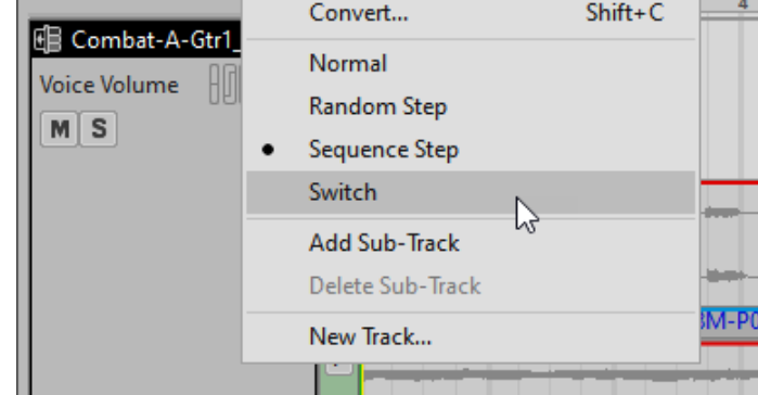 4개의 서브트랙이 있는 기타 트랙을 스위치로 전환하여 체력 단계에 적용시키는 실습~ (체력이 줄어들면 일렉기타가 더욱 강렬해지도록)