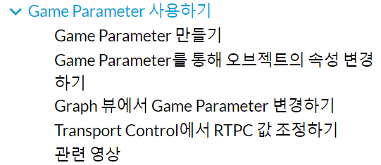 Game Parameter = RTPC (Real Time Parameter Control, 실시간 매개 변수 제어)