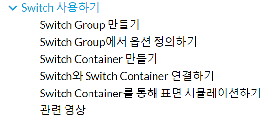 - 스위치 컨테이너의 General Settings 에서 미리 생성한 Switch Group을 선택