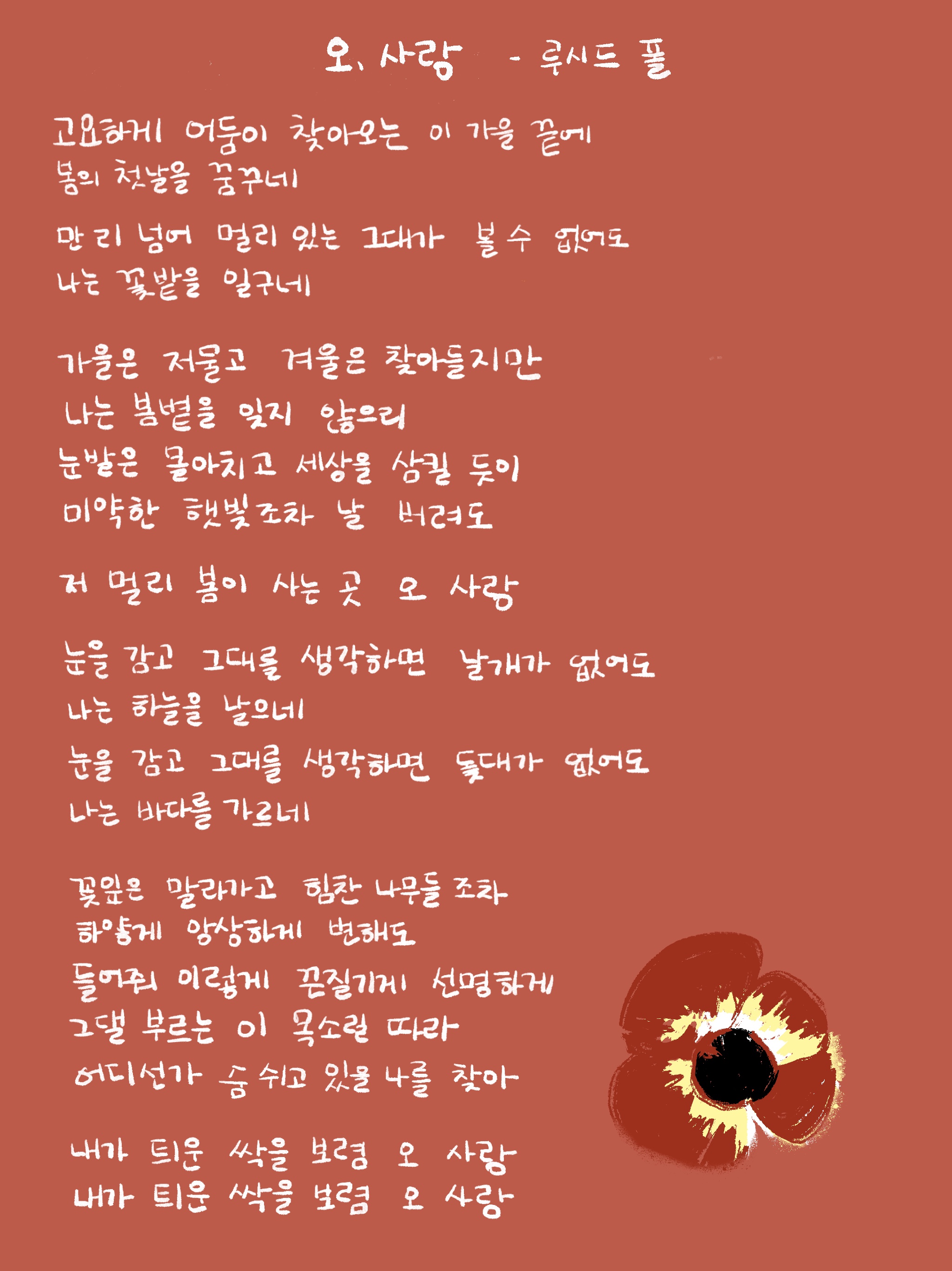 언젠가 꼭 이런 아름다운 노랫말을 가진 음악을 만들 수 있으면 좋겠다.